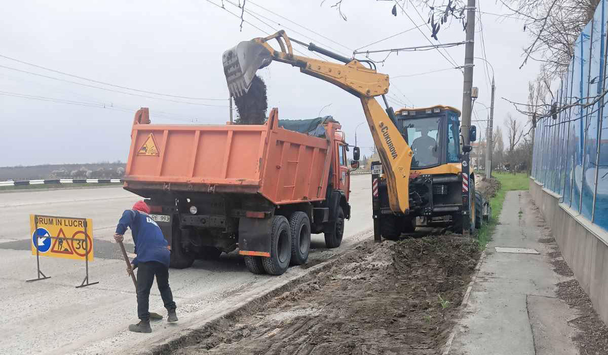 Pe șos. Hâncești intervențiile au vizat refacerea acostamentului și pregătiri pentru montarea bordurilor.
