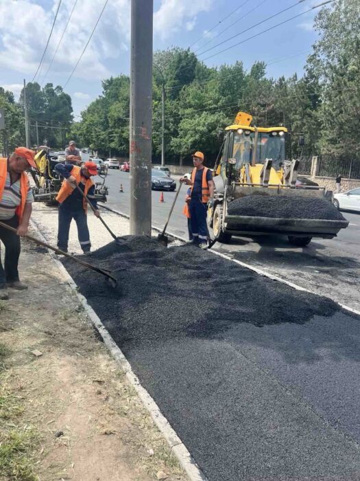 Astfel, au continuat lucrările de reabilitare la Șoseaua Hâncești, executând asfaltări cu stratul de egalizare pe tronsonul Lech Kaczynski – Miorița.