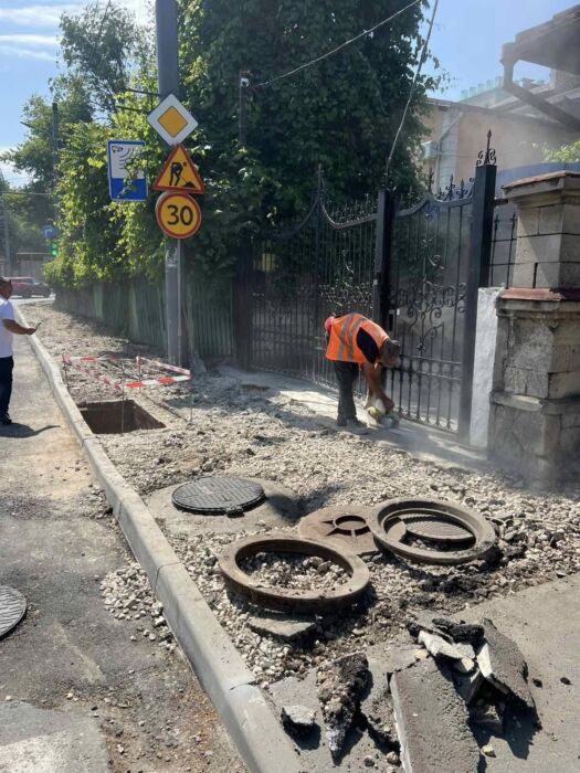 Pe strada Constantin Stere acțiunile au vizat ridicarea receptoarelor și fântânilor de vizitare la cotă și asfaltarea ultimelor porțiuni de trotuar.