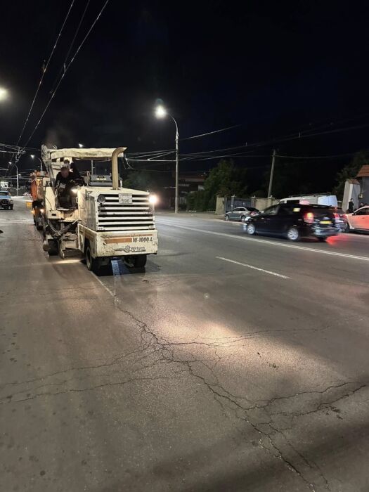 Pe strada Calea Orheiului, pe segmentul cuprins între rondurile Visterniceni și Renașterii Naționale, se desfășoară lucrări de pregătire a carosabilului în vederea aplicării stratului bituminos de tip Slurry Seal – o tehnologie modernă de întreținere periodică, menită să prelungească durata de exploatare a drumurilor și să prevină degradările structurale. În cadrul intervențiilor, se execută frezarea porțiunilor degradate ale suprafeței de rulare, urmată de plombarea mecanizată pentru crearea unui suport uniform. Totodată, în anumite zone sunt efectuate reparații la borduri.