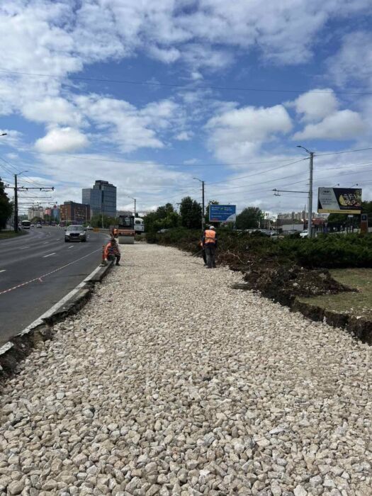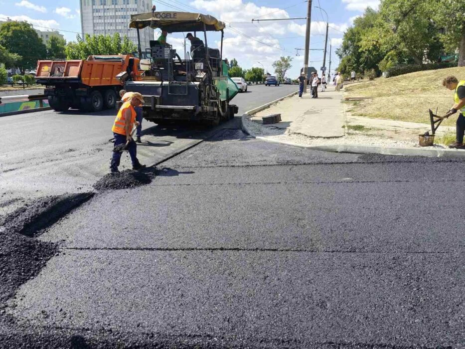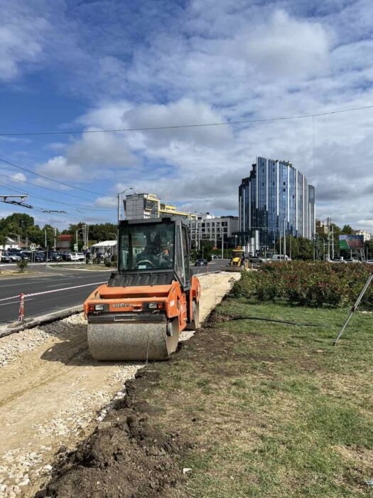 În intersecția străzii București cu bd. Dacia, unde se construiește o bretea de întoarcere pentru transport, acțiunile au vizat amenajarea nisipului și pietrișului, precum și compactarea suprafețelor.