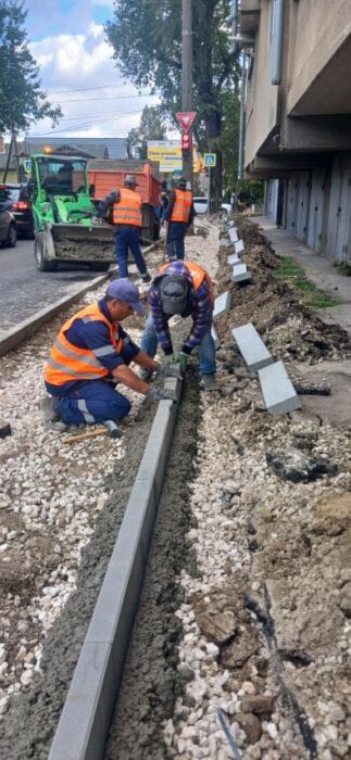 Pe strada Nicolae Costin au continuat lucrările montare a bordurilor, așternerea și compactarea pietrișului la trotuar, reparația și ridicarea la cotă a receptoarelor pluviale și a fântânilor de vizitare.