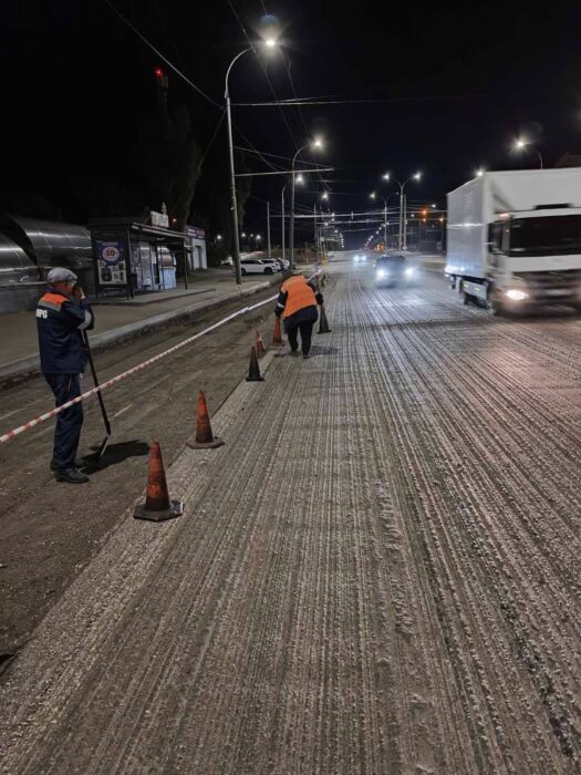 În același timp, pe șos. Hâncești s-a lucrat la restabilirea unei casete de drum, prin frezarea, amenajarea pietrișului anrobat și asfaltarea porțiunii decapate, iar pe strada Nicolae Dimo intervențiile au vizat pregătirea carosabilului pentru așternerea tratamentului bituminos Slurry Seal.