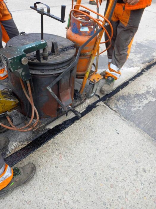 În prezent, se intervine cu lucrări de colmatare a rosturilor cu mastic bituminos și plombarea suprafețelor degradate cu mortar polimeric, acțiuni esențiale pentru asigurarea durabilității carosabilului.