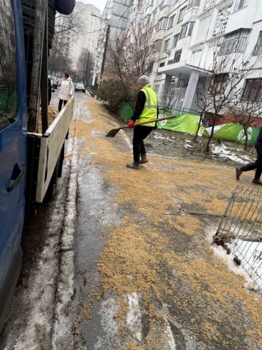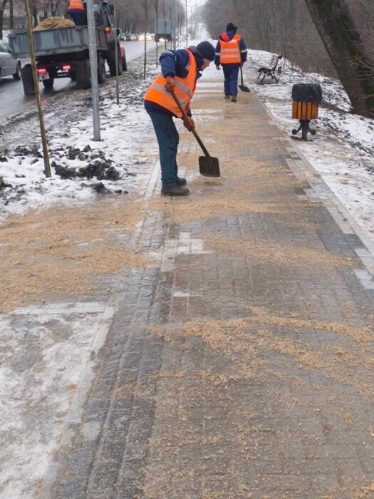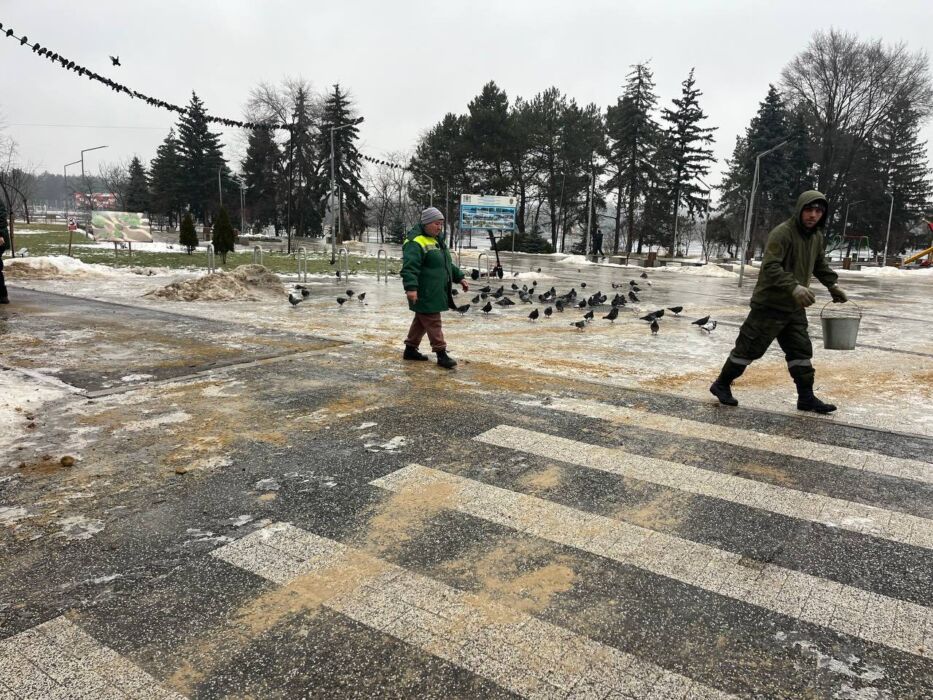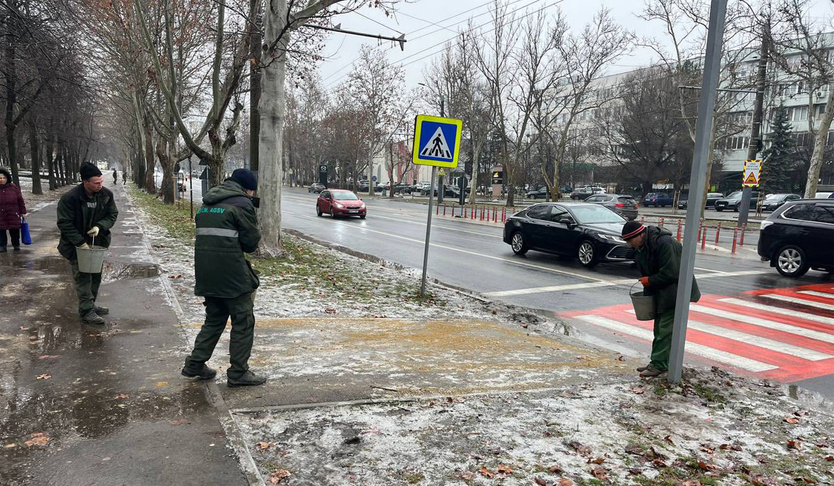 Muncitorii regiilor comunale, ai întreprinderilor municipale de profil au intervenit prin lucrări mecanizate, cât și manual la împrăștierea materialul antiderapant pe cele mai problematice adrese.