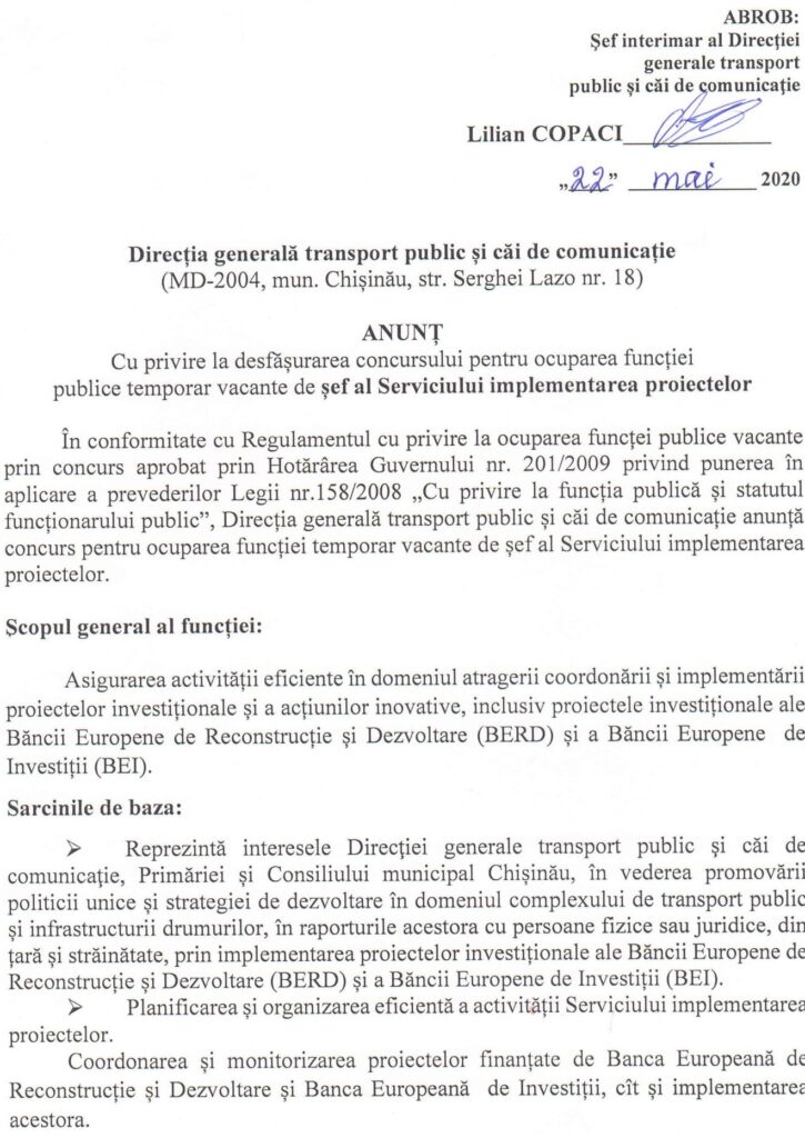 Direcția Generală Mobilitate Urbană este o subdiviziune a Consiliului Municipal Chişinău, ce are în sarcina sa dezvoltarea infrastructurii urbane, care să permită utilizarea cu ușurință a oricărei modalități de deplasare pe care o aleg locuitorii. Aceasta implică reparația și întreținerea drumurilor, amenajarea parcărilor, întreținerea și modernizarea iluminatului public, asigurarea transportului accesibil, confortabil și sustenabil, managementul și siguranța traficului.