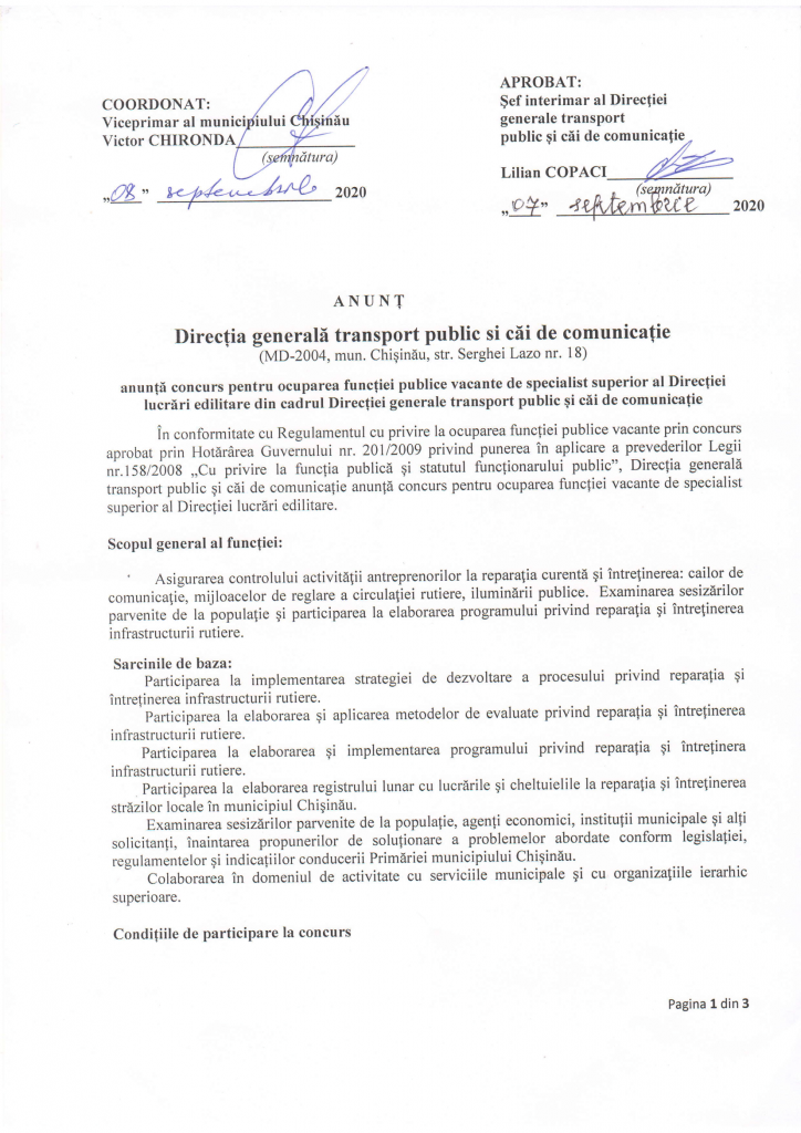 Direcția Generală Mobilitate Urbană este o subdiviziune a Consiliului Municipal Chişinău, ce are în sarcina sa dezvoltarea infrastructurii urbane, care să permită utilizarea cu ușurință a oricărei modalități de deplasare pe care o aleg locuitorii. Aceasta implică reparația și întreținerea drumurilor, amenajarea parcărilor, întreținerea și modernizarea iluminatului public, asigurarea transportului accesibil, confortabil și sustenabil, managementul și siguranța traficului.
