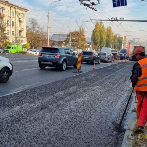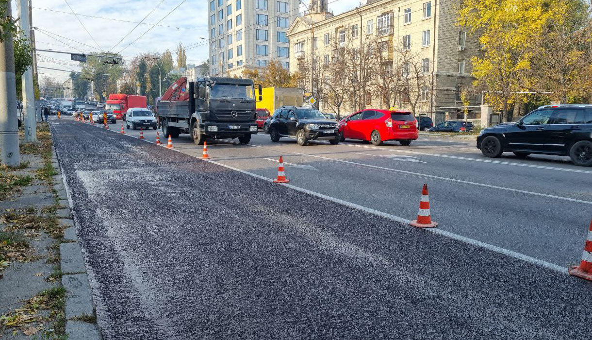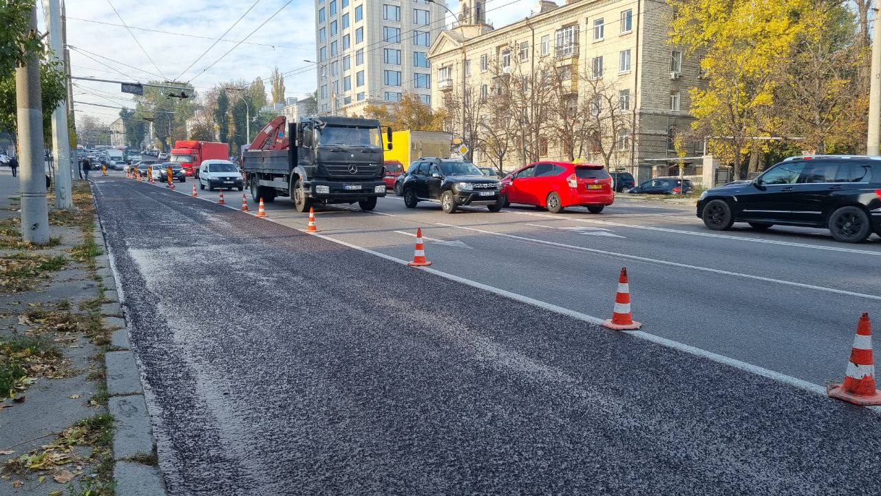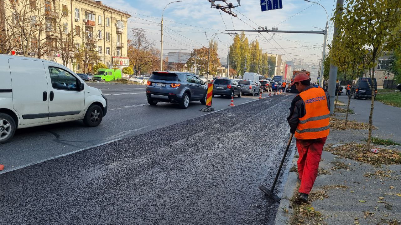 Pe o porțiune de carosabil, pe strada Mihai Viteazul din Chișinău, a fost aplicat, în regim de testare, primul strat de tratament bituminos, de tip Slurry Seals.
