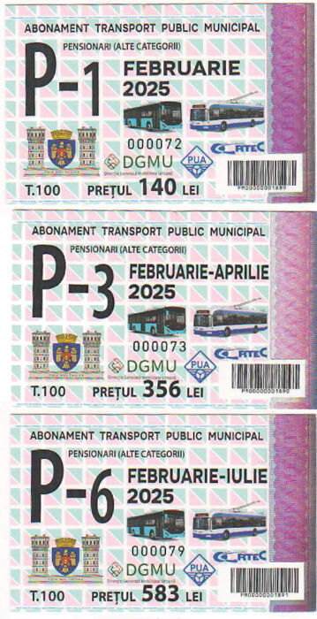 - Studenți: 164 lei – 1 lună; 416 lei – 3 luni, 680 lei – 6 luni;