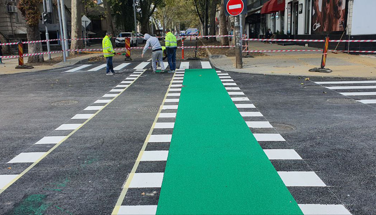 În paralel cu instalarea pilonilor de delimitare, pe strada 31 August 1989 a început procesul de aplicare a marcajului de culoare verde în intersecții, cu scopul de a avertiza șoferii care intersectează pista de cicliști. În prezent, aceste lucrări au loc la intersecția cu strada Armenească.